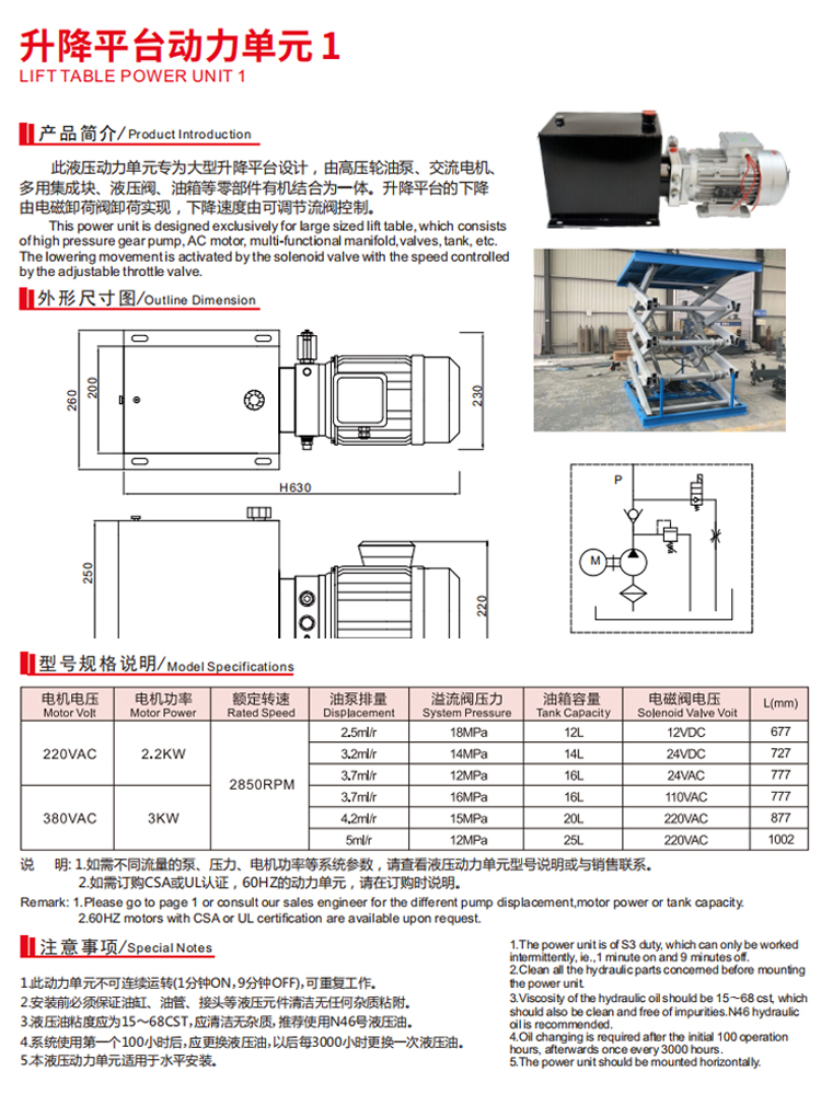 升降平臺(tái)動(dòng)力單元